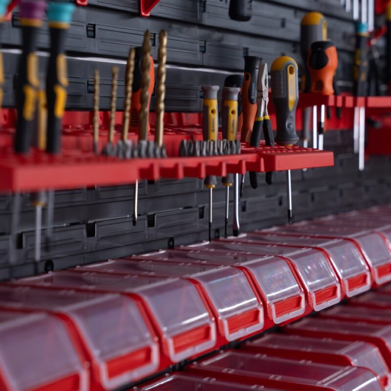 Stena na náradie 1152×780 mm – 23 boxov s držiakmi – organizér do dielne