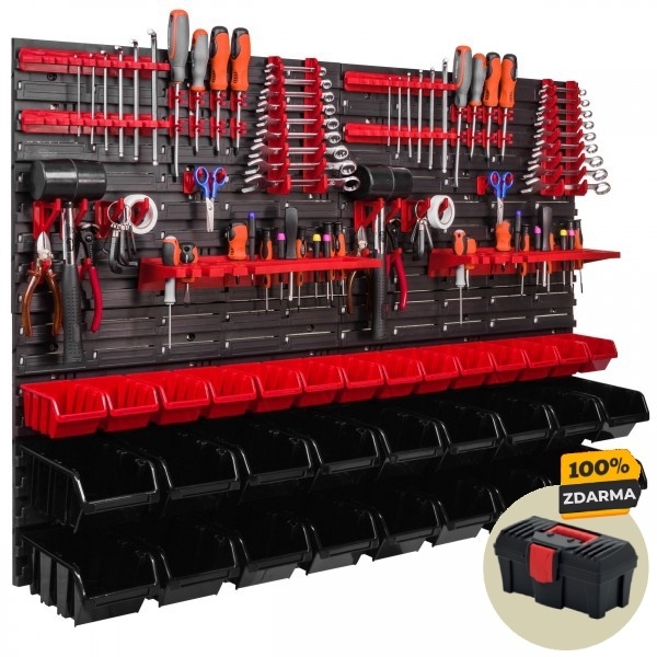 Zostava steny na náradie 1152×780 mm – 32 boxov s držiakmi obsahuje: